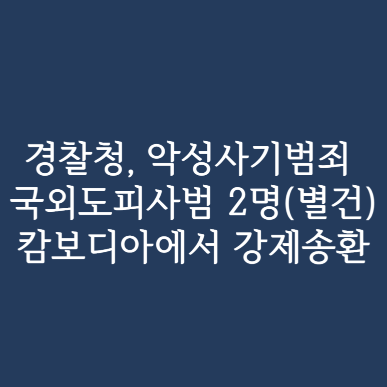경찰청(청장 윤희근)은 “서민 경제에 치명적인 피해를 주는 악성사기*’에 대한 강력한 척결 대책을 추진하고 있는 가운데, 캄보디아로 도피한 악성사기범죄 피의자 2명을 캄보디아 경찰과의 국제공조로 검거하여 2022년 8월 30일 인천국제공항을 통해 강제송환하였다.”라고 밝혔다.